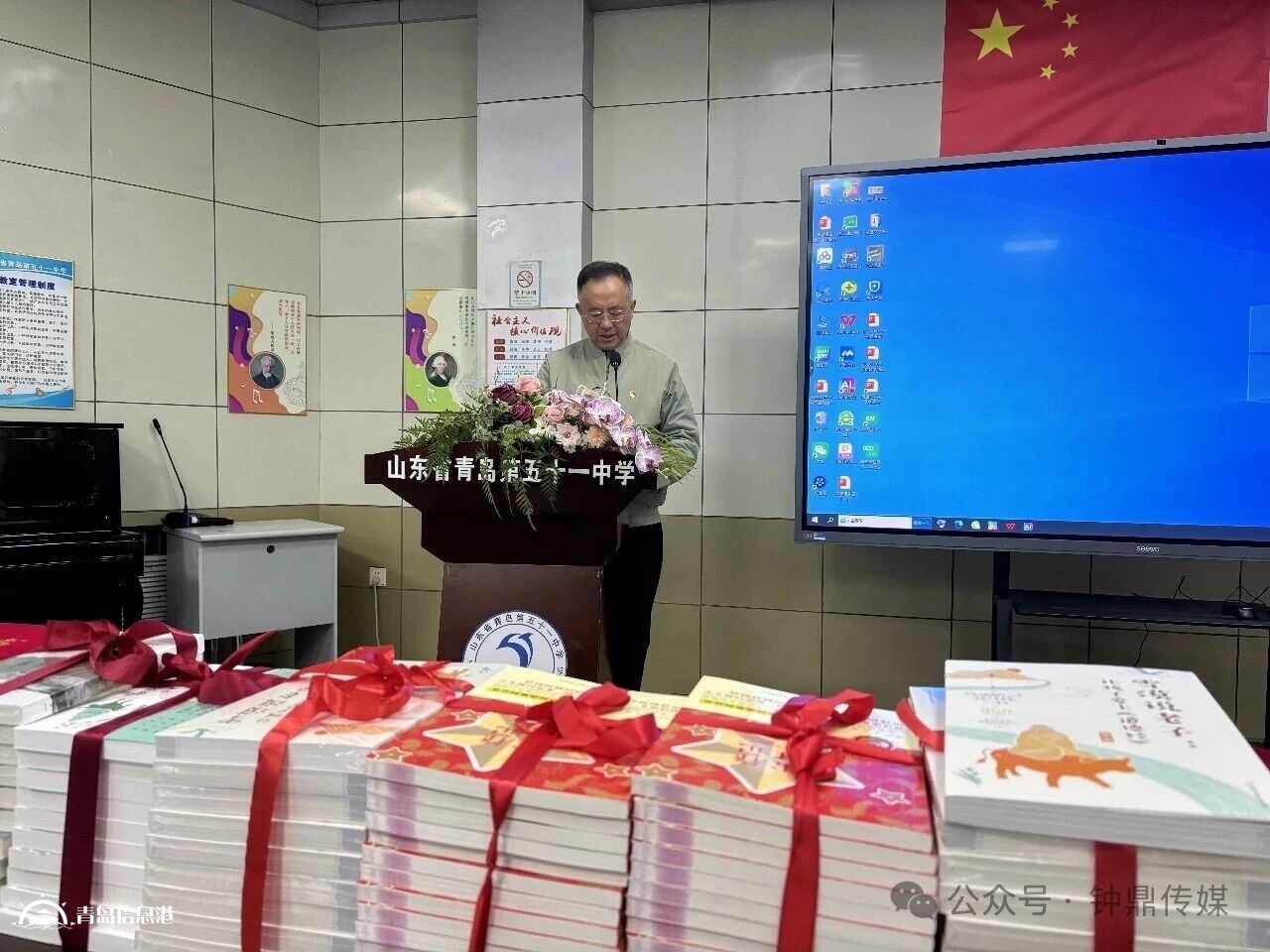 为深入学习贯彻习近平总书记关于全民阅读的重要讲话精神,落实国家全民阅读战略部署,厚植校园书香文化,传承雷锋精神与中华优秀传统文化,2026年1月29日上午,由青岛市雷锋精神研究会、广州市香巴文化研究院与山东省青岛第五十一中学联合主办的“学雷锋读好书·校园全民阅读”启动活动,在青岛五十一中学报告厅圆满举行。习近平总书记曾指出,“阅读是人类获取知识、启智增慧、培养道德的重要途径”,并号召全社会“形成爱读书、读好书、善读书的浓厚氛围”。此次三方携手举办的校园阅读活动,正是以实际行动响应号召,让书香浸润校园,让精神滋养童心。尽管寒假将至,一百余名师生仍满怀热忱返校参与,共同见证这场红色文化与中华经典交相辉映的书香盛会。 多方聚力,共赴书香之约 本次活动得到主办三方的高度重视与精心筹备。青岛市雷锋精神研究会创会人兼党委书记王发令、名誉会长周俐江、副会长兼秘书长裴艳敏,广州市香巴文化研究院青岛少儿成长营志愿者王一斐、志愿者董克港,以及青岛第五十一中学副校长张曙强、办公室副主任韩超越、学生处副主任杨秀娟等领导与老师出席活动,为校园阅读注入强劲动力。张曙强副校长全程热情接待,对主办方的公益善举表示衷心感谢,他说:“在全民阅读成为时代风尚的当下,这场活动恰逢其时,既为学校补充了优质的阅读资源,更以雷锋精神为引领,为新学期全民阅读活动拉开了精彩序幕。” 赠书传情,经典浸润童心 活动现场最动人的环节莫过于赠书仪式。王发令、周俐江、裴艳敏、王一斐、董克港五位嘉宾共同上台,向学校捐赠精选图书,其中包括承载红色记忆的《雷锋日记》,以及国家一级作家、著名文化学者雪漠老师著作的《雪漠说老子:让孩子爱上<道德经>》。这些书籍既是红色文化的精神传承,也是中华优秀传统文化的智慧载体,为同学们搭建起跨越时空的文化对话桥梁。8名学生代表精神抖擞地走上台,恭敬地从嘉宾手中接过书籍,双手捧着图书时眼神中满是对知识的渴望与对奉献精神的崇敬,整齐的队列与真挚的神情让现场暖意倍增,掌声持续良久。 王发令书记在致辞中特别举起《雪漠说老子:让孩子爱上<道德经>》,向师生们深情推荐:“这本书跳出传统注解框架,将《道德经》的智慧与现代生活相结合,教会孩子们如何运用传统智慧解决成长困惑、提升认知。目前它已走进全国数十所学校,累计捐赠达数千册,希望同学们能在雪漠老师的文字中读懂经典、涵养品格。”这番话让在场师生对经典阅读有了更深刻的理解,也感受到了公益赠书背后的深厚期许。 随后的颁发证书仪式上,张曙强副校长为王一斐(代表广州香巴文化研究院)颁发荣誉捐赠证书。王一斐接过证书时,全场再次响起热烈掌声,这不仅是对捐赠方公益情怀的肯定,更是对“学雷锋、读好书”理念的共同认同。 青春发声,践行精神传承 学生代表吴真熙的发言,将活动氛围推向高潮。她以真挚的情感、简洁的表达,分享了红色经典与中华经典阅读带来的双重感悟,让雷锋精神与经典智慧的融合更加真切:“习近平总书记说,阅读是启智增慧、培养道德的重要途径,雷锋叔叔‘挤时间、钻学问’的钉子精神,正是对‘爱读书、读好书’的最好践行。翻开《雷锋日记》,‘把有限的生命投入到无限的为人民服务中去’的赤诚话语,让我读懂了奉献、互助的真谛,更懂得了要以点滴行动践行雷锋精神;而《雪漠说老子:让孩子爱上<道德经>》,让我走进了中华经典的世界,从‘上善若水’中学会包容与谦和,从经典智慧中汲取成长的力量,明白做人做事的道理。”她结合日常学习与生活谈到,阅读的意义在于践行:“红色经典教我们守初心、敢担当,中华经典教我们修身心、知礼仪,二者相融,便是成长最好的养分。课间帮同学讲解难题,整理校园图书角,参与社区小志愿,都是把书中的道理化为行动。”她向全体同学发出倡议:以《雷锋日记》为指引,践行雷锋精神;以《道德经》等经典为友,涵养品格智慧,让阅读成为习惯,让书香伴成长,让雷锋精神与中华经典在校园中代代相传。这番朴实又真诚的发言,引发了在场师生的强烈共鸣,不少同学默默点头,眼神中透着坚定。 赓续基因,阅读之路启航 活动最后,全体领导、嘉宾与8名接书学生代表及其他学生代表共同上台合影留念,镜头定格下这一温暖而有意义的瞬间。此次“学雷锋读好书”活动,不仅是一次暖心的赠书与启动仪式,更是一次精神的洗礼与传承——它以《雷锋日记》为纽带,赓续红色基因,让雷锋精神在青少年心中扎根;以《雪漠说老子:让孩子爱上<道德经>》为载体,传承中华优秀传统文化,让经典智慧照亮成长之路;以全民阅读为契机,响应习近平总书记的号召与《全民阅读促进条例》的要求,为青少年搭建起“读好书、善读书、践美德”的平台。 正如张曙强副校长所言:“这场活动为新学期开了个好头,我们将以此次活动为起点,持续开展各类阅读活动,让爱读书、读好书成为校园风尚,让雷锋精神与经典智慧伴随同学们成长。”相信在书香的浸润与精神的引领下,青岛五十一中的学子们必将以书为帆、以善为桨,在成长之路上坚定前行,让雷锋精神代代相传,让文化自信扎根心间。 编辑:孙琦 |